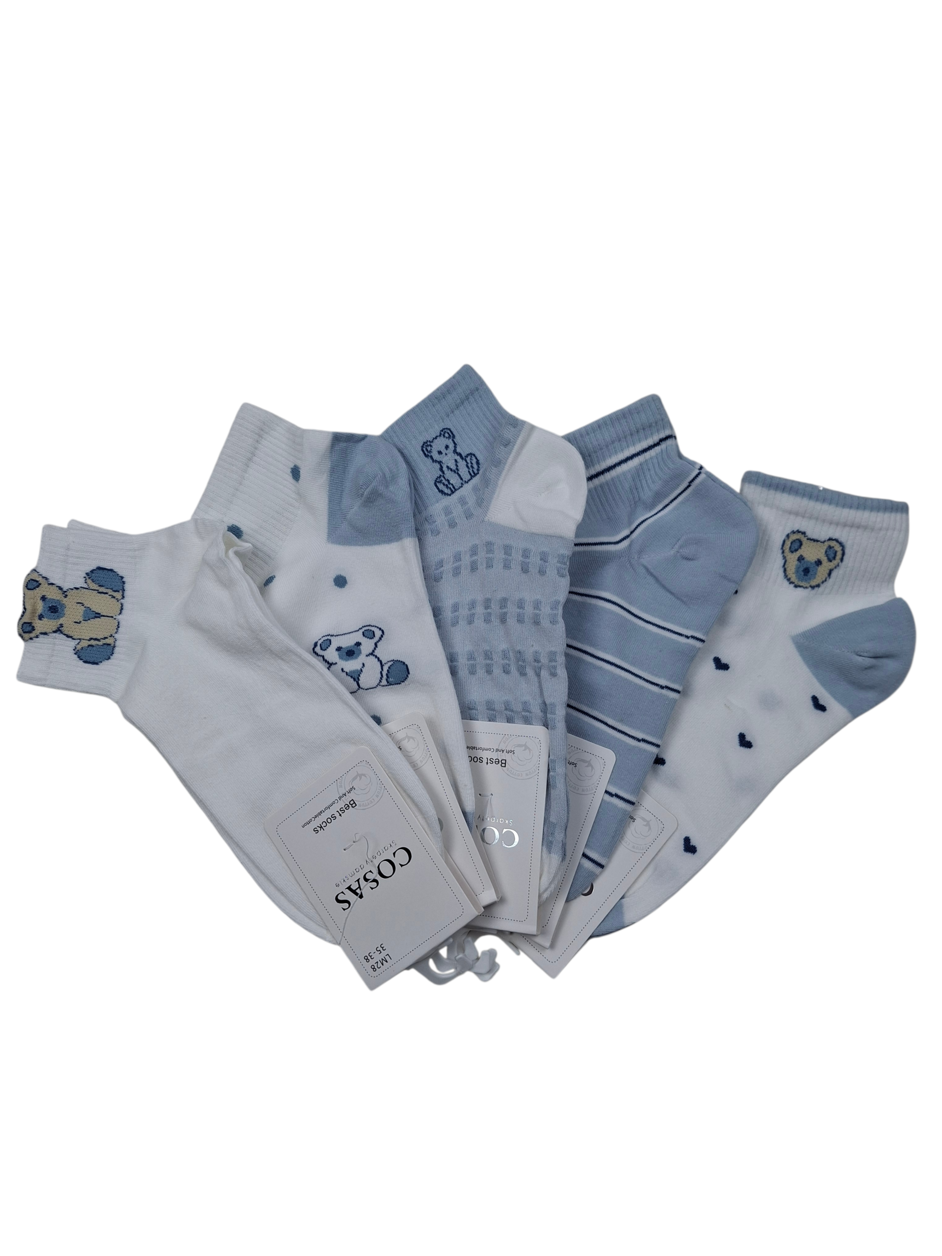 5-pak damskich skarpetek bawełnianych w kolorze niebiesko-białym. Miękkie i wygodne.