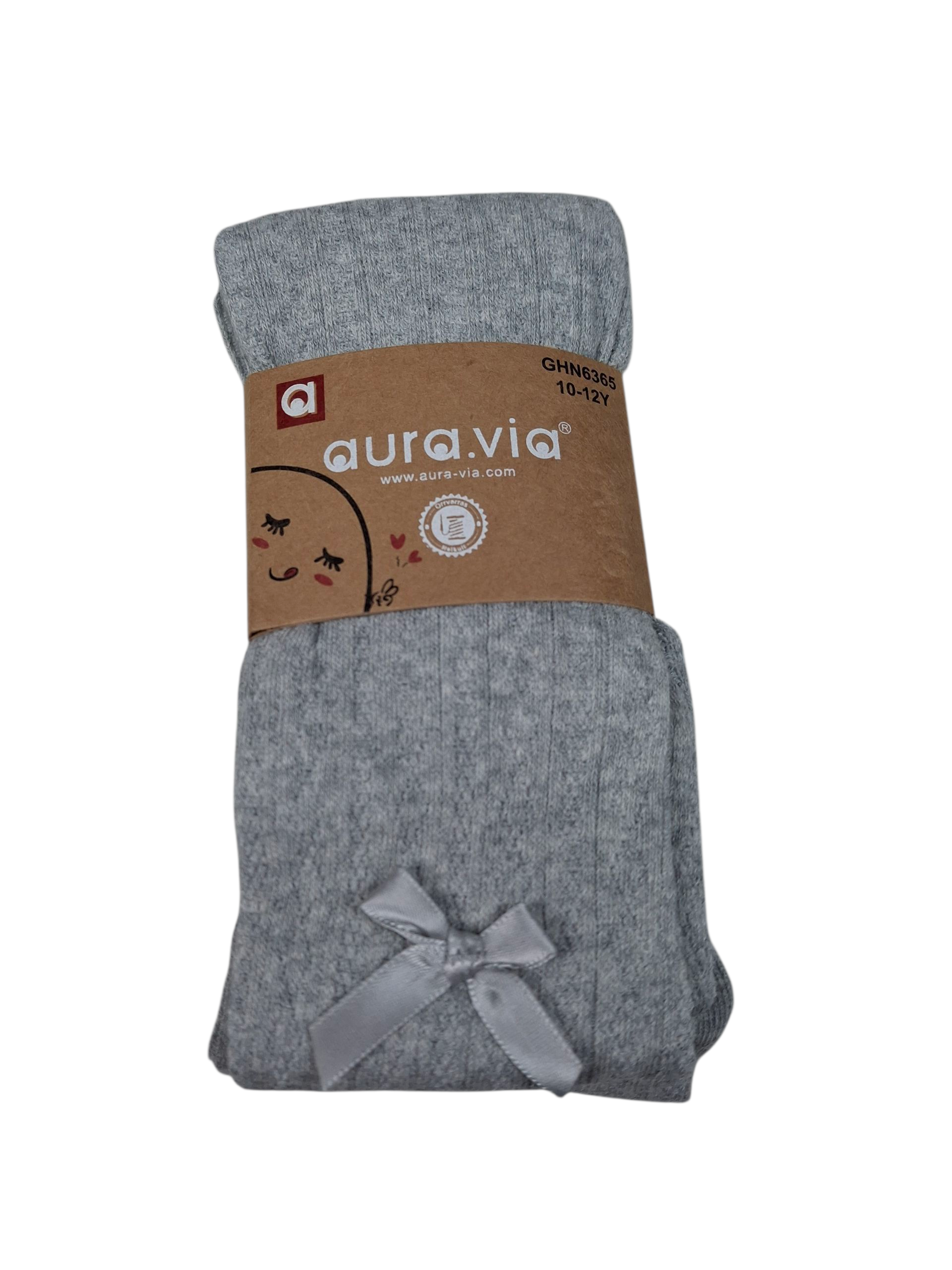 Jasnoszare rajstopki ażurowe z małą kokardką 🎀 – delikatne, elastyczne i eleganckie. Wysokiej jakości bawełna, idealne do sukienek i spódniczek.