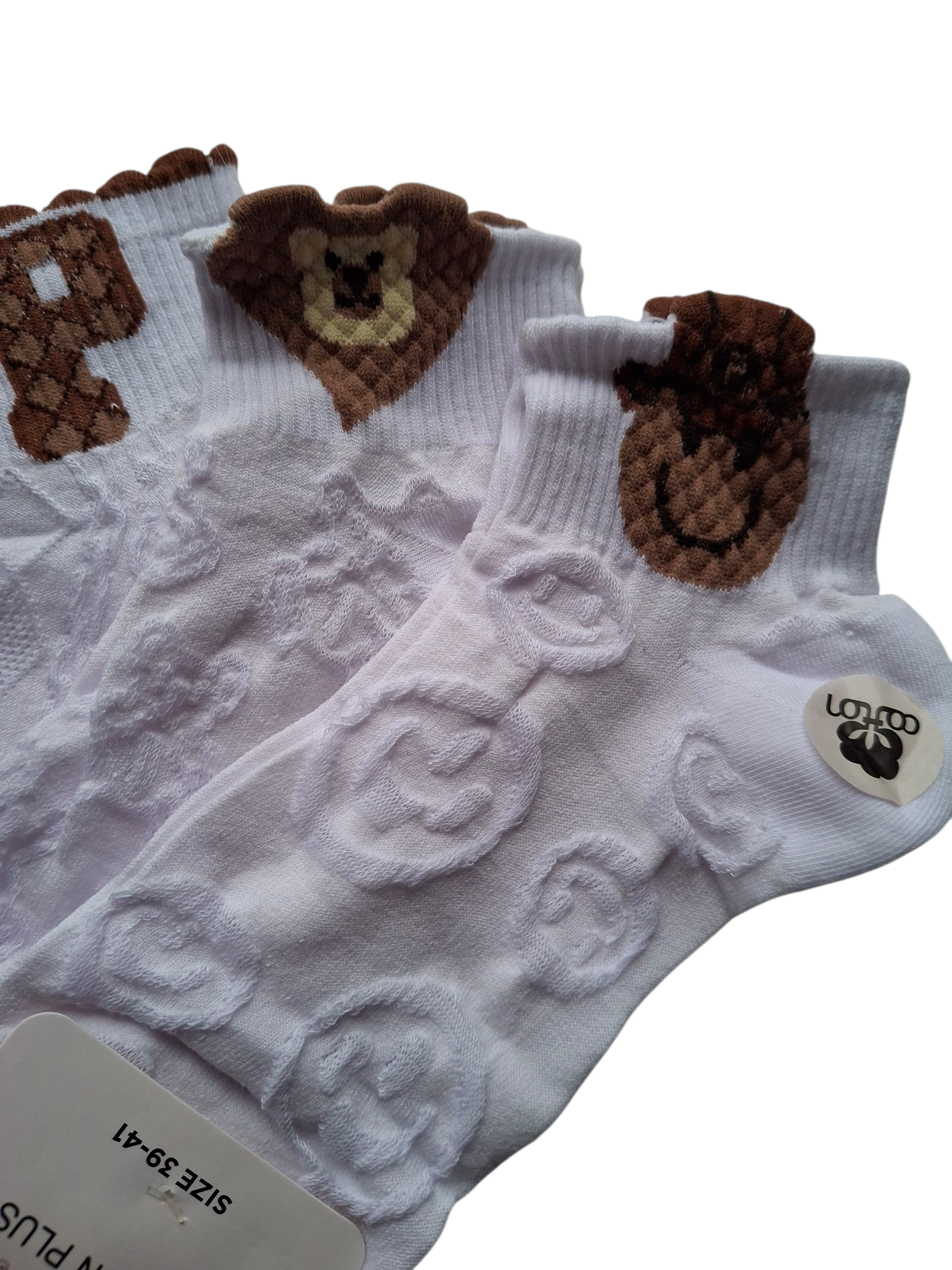 Zestaw 5 par białych, krótkich skarpetek z bawełny – miękkie, przewiewne i elastyczne. Idealne na co dzień i do obuwia sportowego.