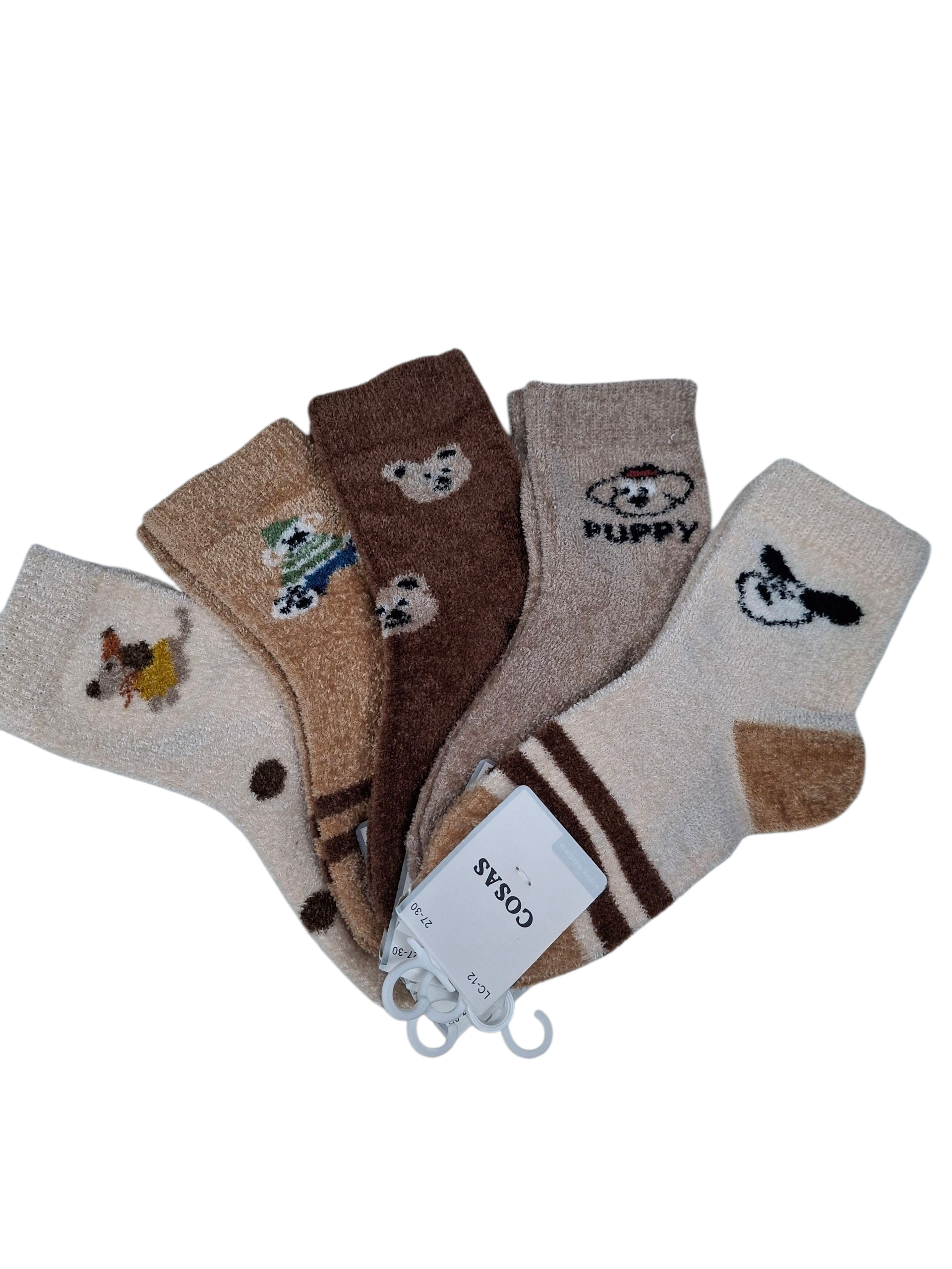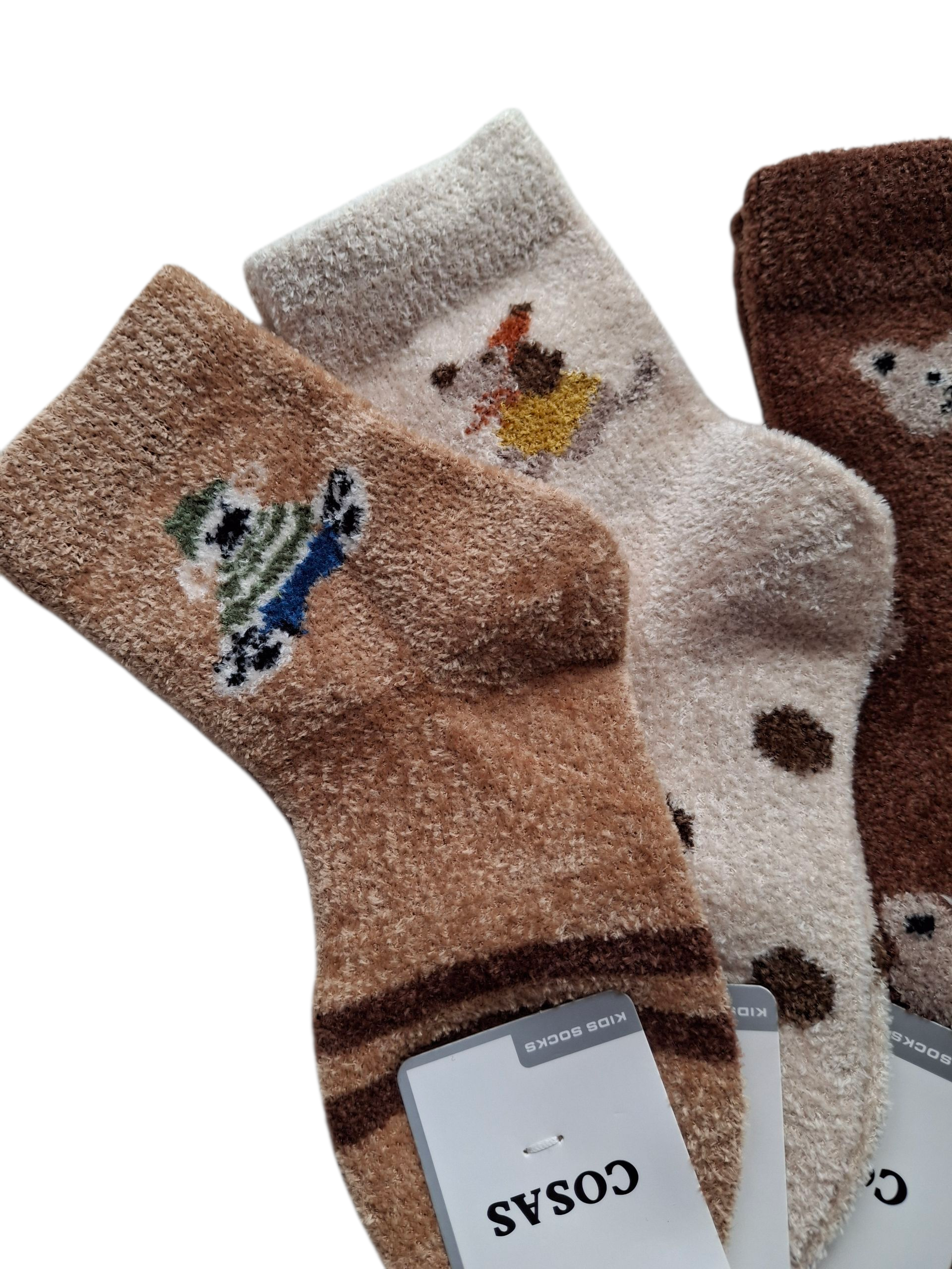 Zestaw 4 par skarpetek dla chłopca i dziewczynki z 80% sztucznej norki, 15% poliestru i 5% spandexu. Ciepłe, miękkie i elastyczne – idealne na co dzień.