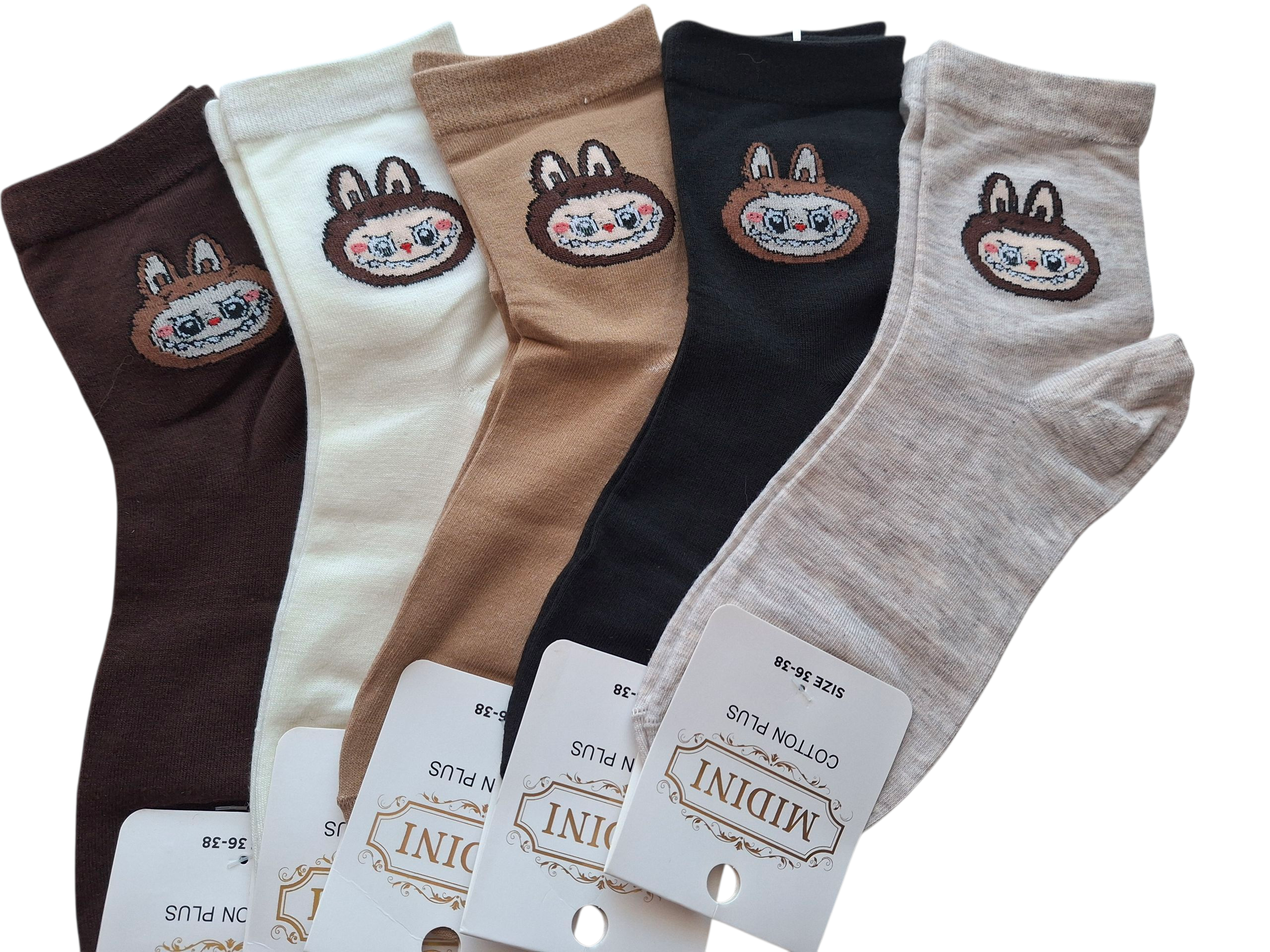 Zestaw 5-pak kolorowych skarpetek z motywem Labubu – 95% bawełna – miękkie, elastyczne i stylowe