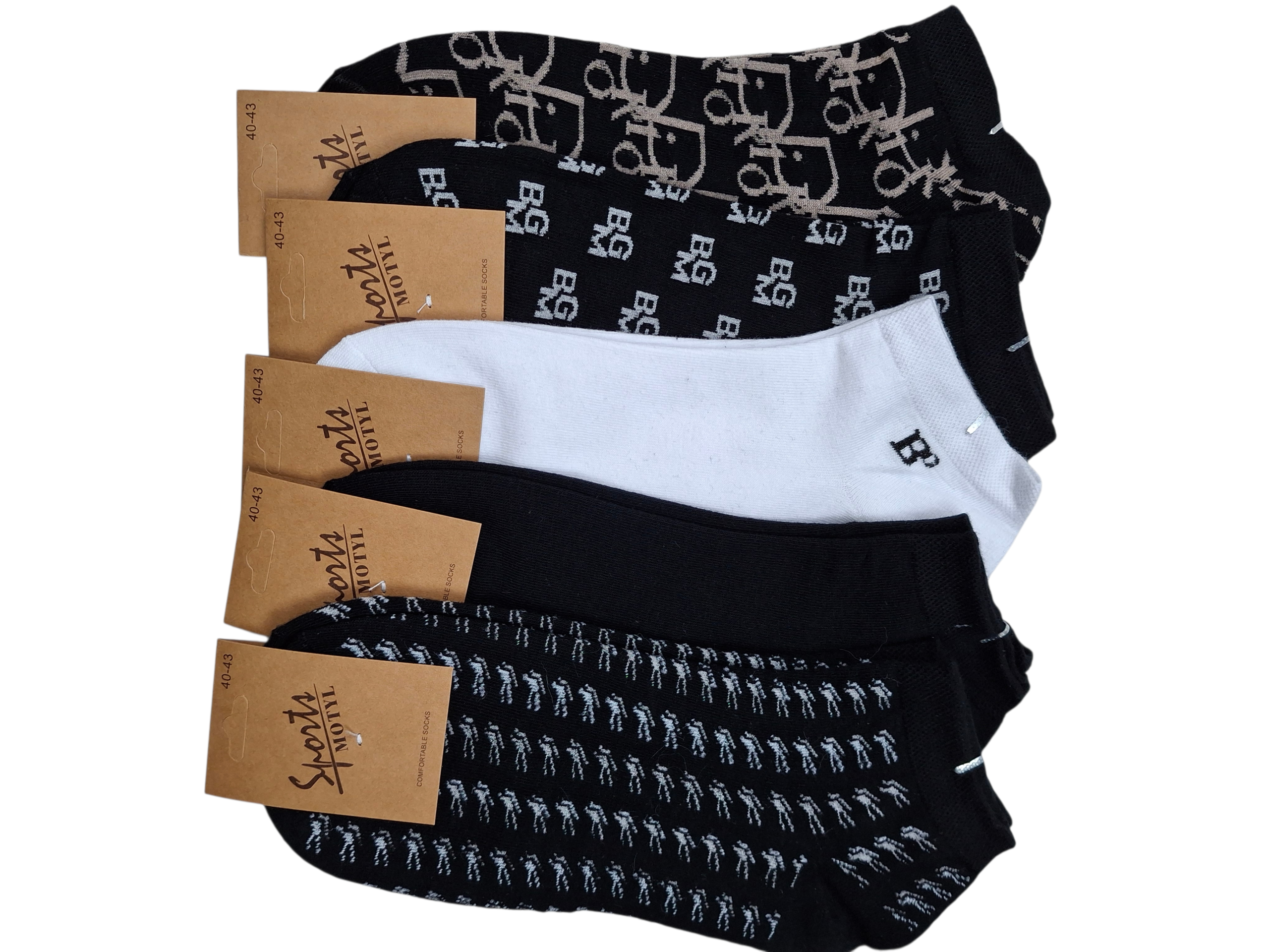 Zestaw 5 par męskich skarpetek krótkich 🧦 we wzorki, bawełniane i wygodne. Kolory i wzory wysyłane losowo.